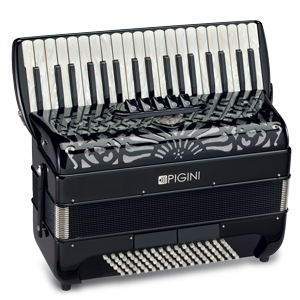Accordéon chromatique PIGINI à 3 voix 37 touches/ 3 voix/ 96 basses Main droite : 37 touches à 3 voix du Sol au Sol 5 registres Main gauche : 96 basses à 5 voix 2 registres Poids : 8,9 Kg