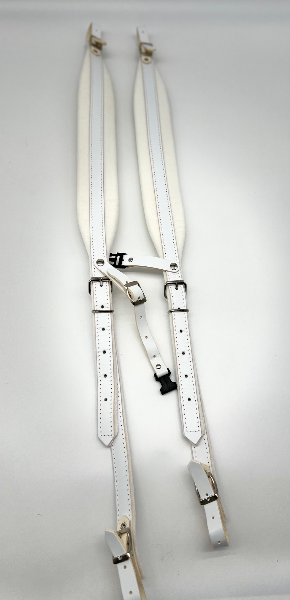 Bretelles accordéon en cuir avec un rembourrage velours de très haute qualité (fabrication italienne).