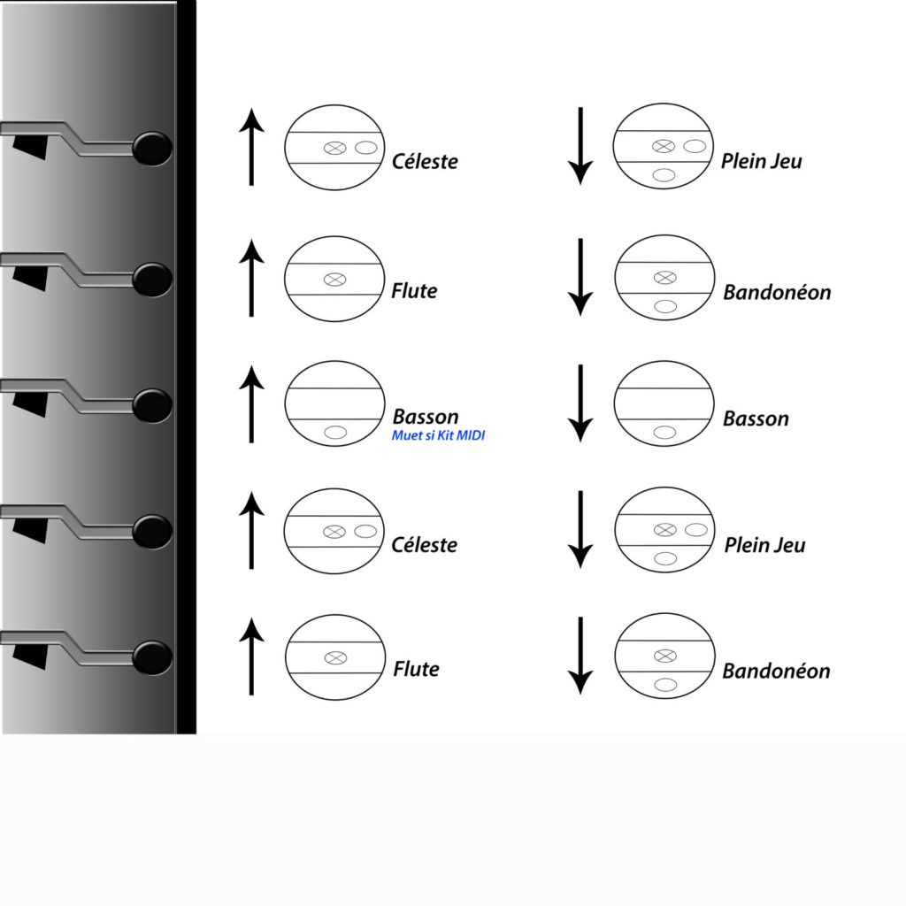 Pour les amateurs d’accordéons à grande étendue, voici la version 120 basses de l’orchestre 5. Il a les mêmes particularités que le modèle à 96 basses, avec comme avantage une étendue plus grande.
